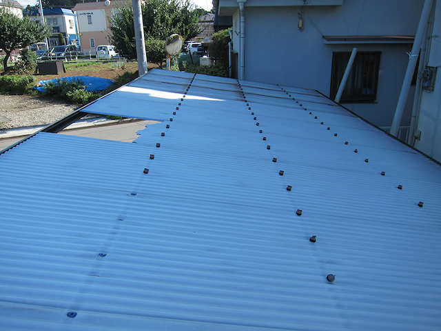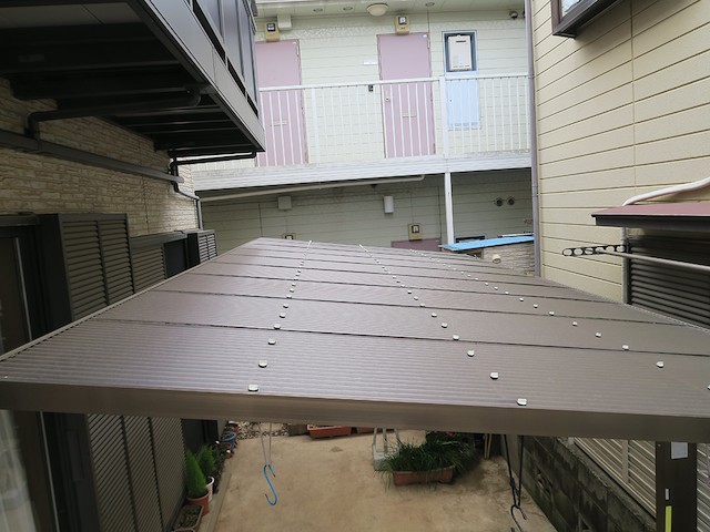 駐車場の屋根が経年劣化しており、交換工事を行うことになりました。