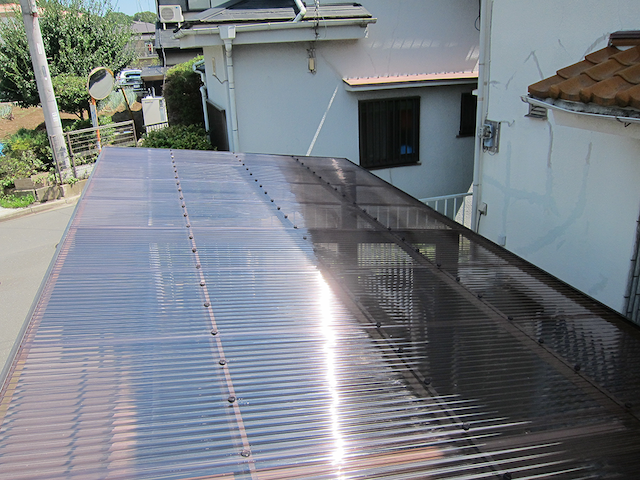 古く、割れやすくなっていた屋根を新しいポリカ屋根に交換したことで、外観も美しくなりました。